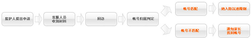 家长监护工程充分考虑家长的实际需求,当家长发现自己的孩子玩游戏过于沉迷的时候,由家长提供合法的监护人资质证明、游戏名称账号、以及家长对于限制强度的愿望等信息,可对处于孩子游戏沉迷状态的账号采取几种限制措施,解决未成年人沉迷网游的不良现象,如限制孩子每天玩游戏的时间区间和长度,也可以限制只有周末才可以游戏,或者完全禁止。