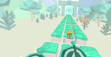 本作强调的并不是演奏音乐,而是需要玩家随着音乐节奏控制一个可爱的小家伙,在一条长长的道路上,跳过各种障碍,方可通关。