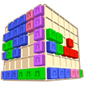 立方体四个面须同时满足同一直线位置被方块填满,方可消除。